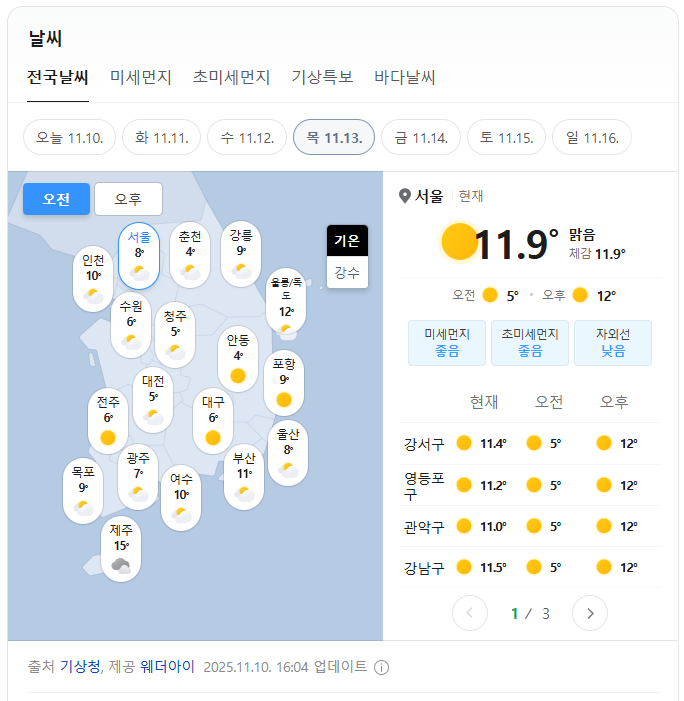 수능 당일 전국 날씨